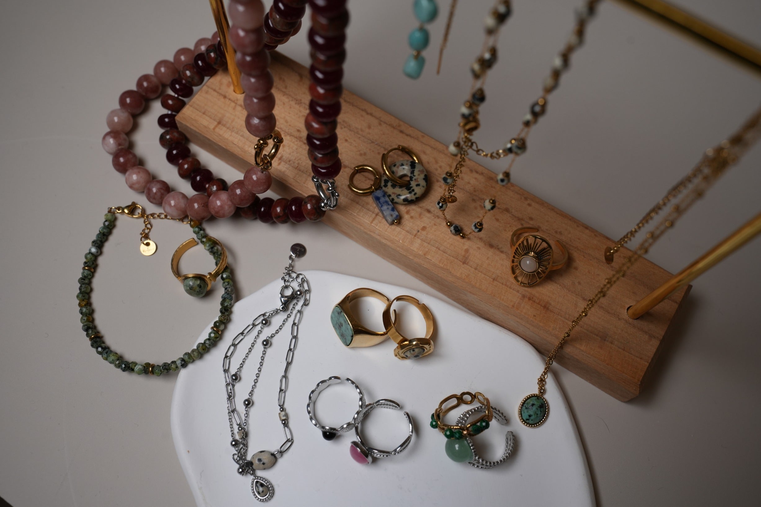Our collection includes necklaces, rings, earrings, and bracelets, all carefully designed with the most beautiful natural stones. Every piece is unique, as no two stones are ever the same. This way, you wear an exclusive piece that truly reflects who you are.